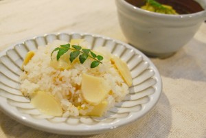 - フライパンにオリーブオイルをいれ、潰したにんにくを熱して香りを出した後ベーコンを炒める。