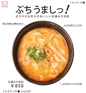 山口井筒屋一階入り口にて先月よりオープンした、てしま旅館のコンセプトショップteshimoにて、光浦醸造の麦みそを使用した坦々麺が好評中です。四川風のゴマ坦々麺ではなく、山口の素材をうまく使ったまろやかで”山口らしい”坦々麺です。