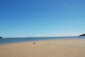 雲の切れ目とかじゃなくて、スポットライトで照らしたような、青色だけを抽出した虹のような、何とも不思議な光でした。