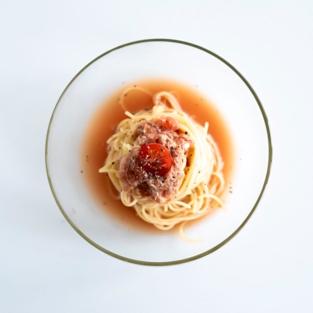 暑い季節にぴったりの、さっぱり冷たい「トマトとツナの冷製パスタ」。洋風マホウダシのうまみがトマトの酸味とツナのコクを引き立てて、簡単なのに奥深い味わいに。火を使う時間も短くて済むので、忙しい日や食欲がない日にもおすすめ。冷やしたパスタに、混ぜるだけのソースをからめれば完成。お好みでハーブを添えれば、彩りも華やかに。手軽で、おしゃれで、なにより美味しい夏の定番パスタです。